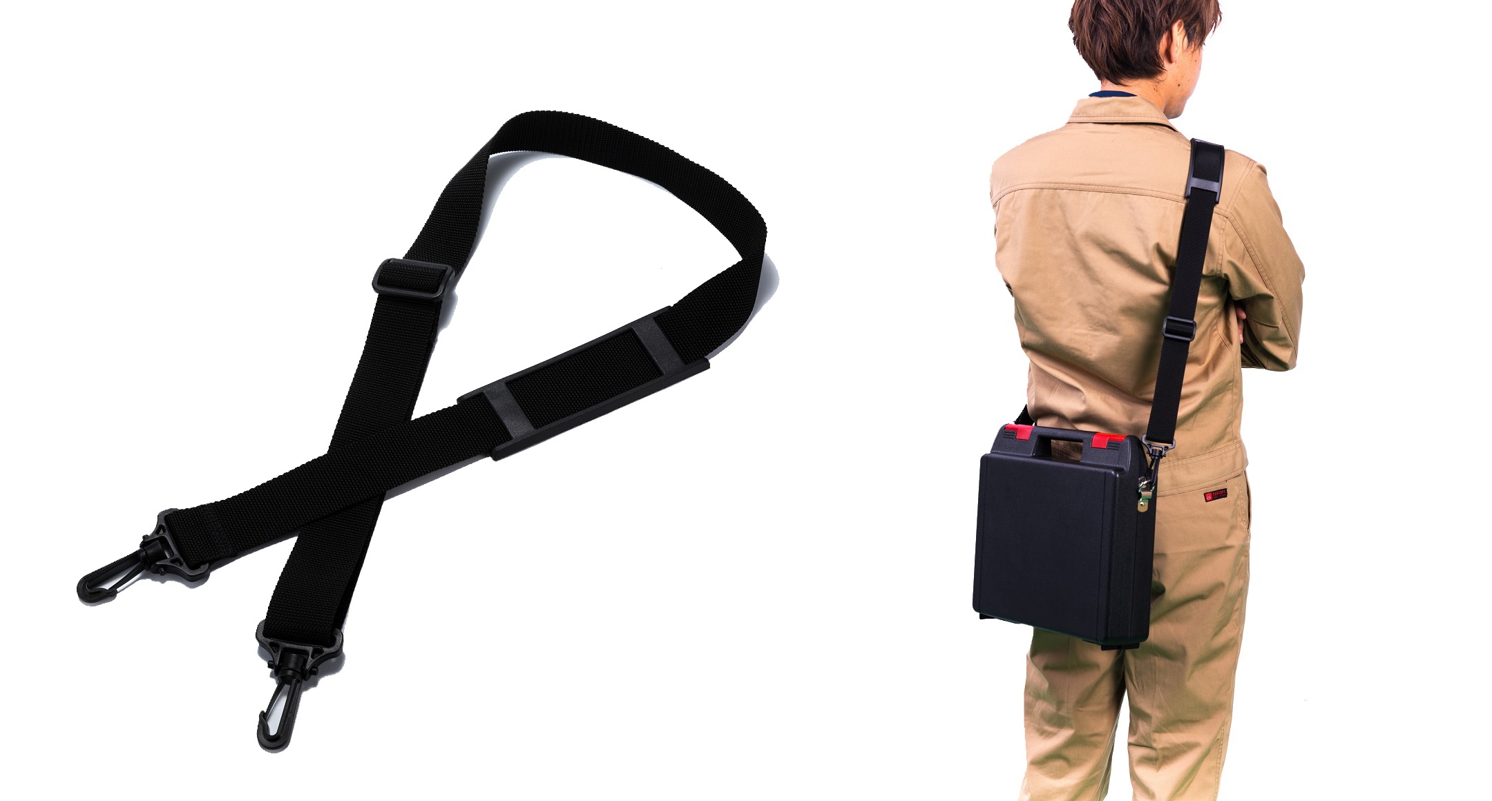 Strap length is adjustable anywhere between 750mm and 1250mm. 38mm strap width.
