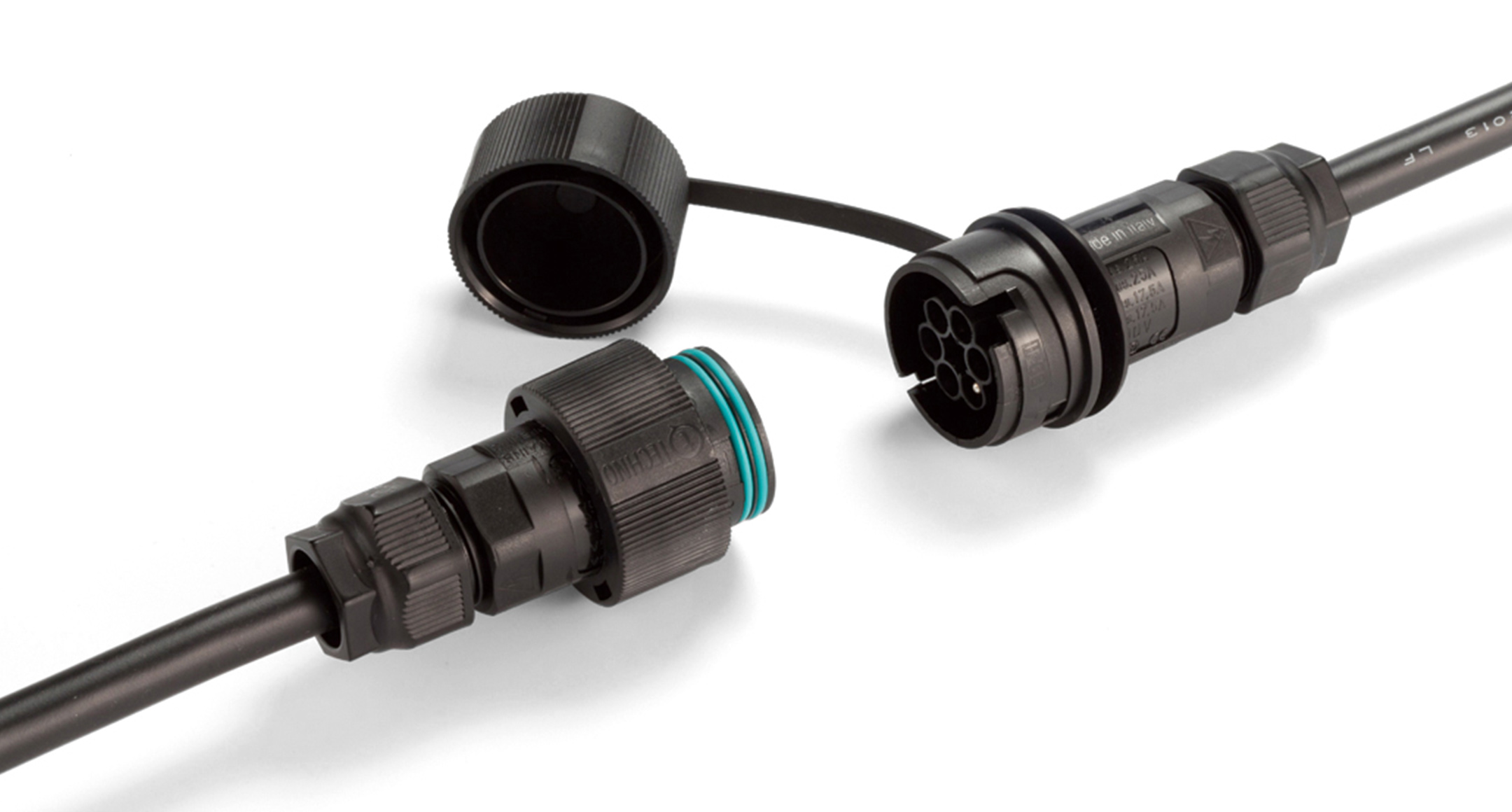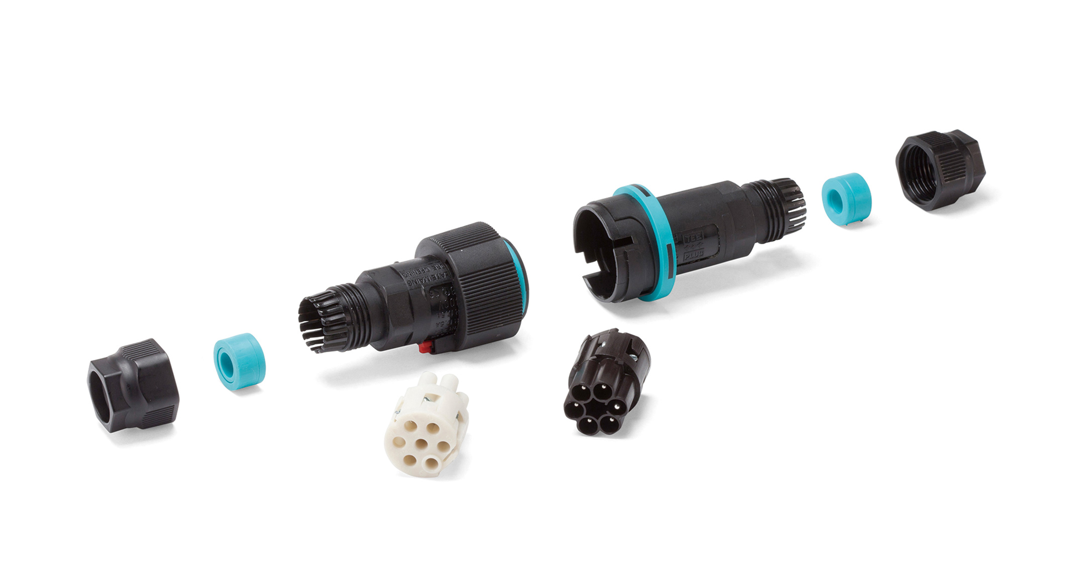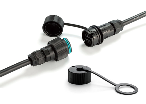 IP68 plug-socket connector type consisting of the plug side (male) and socket side (female).
