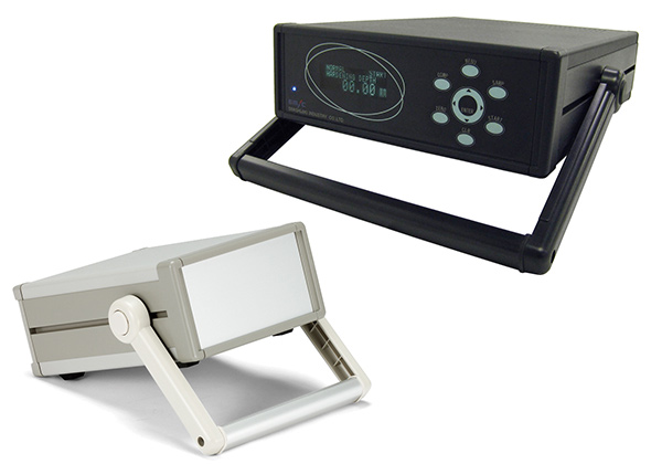 - Desktop metal enclosure with tip-up handle.