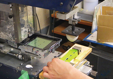 It is also called tampography, a printing process that can transfer a 2-D image onto a 3-D object using an indirect offset (gravure) printing process via a silicone pad onto a substrate. Elastic silicone pad enables to print even on the curved surface or the surface where the height difference exists.