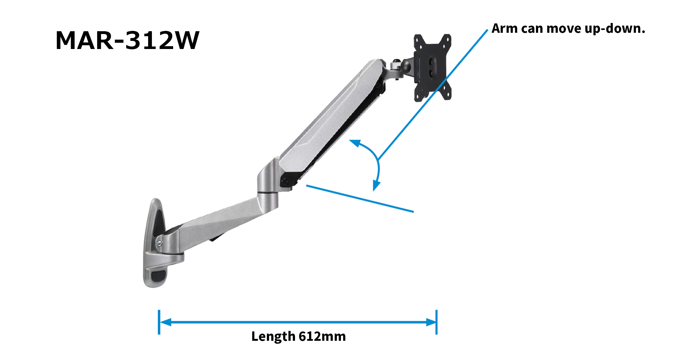 MAR-312W : Length 612mm / Max load 6.5kg / Arm can move up-down, left-right & Bracket can move up-down, left-right
