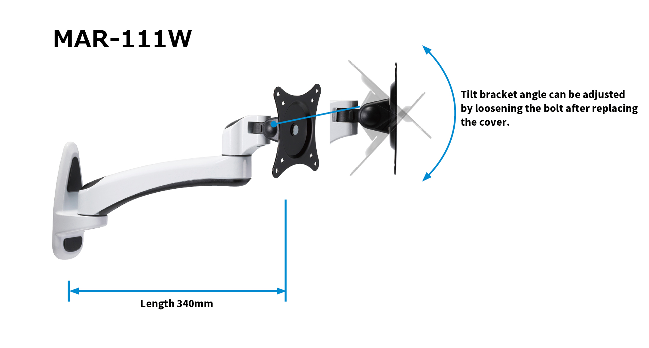 MAR-111W : Length 340mm / Max load 8kg / Arm can move left-right & Bracket can move up-down, left-right