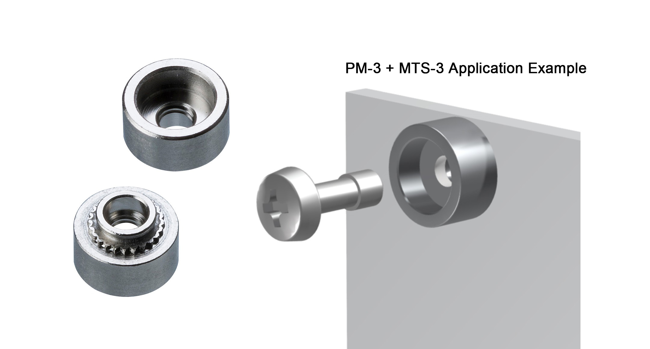 Steel captive fastener use with PM series captive screw for making detachable panels.