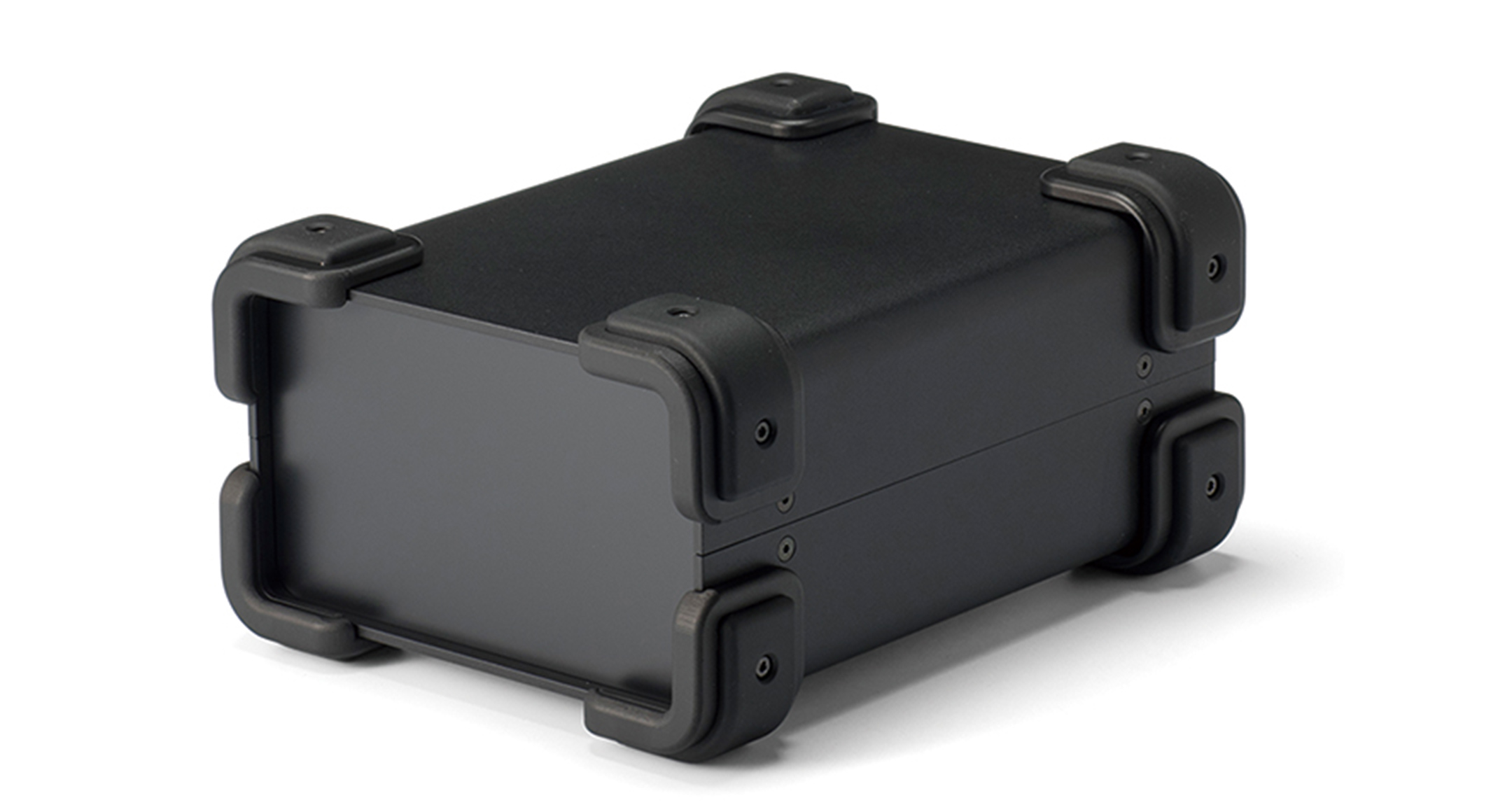 Aluminium case equipped with shockproof and anti-slip corner guards.